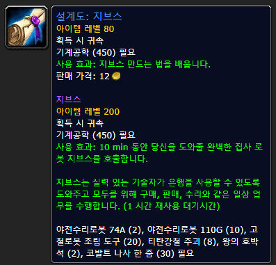 *추가 정보 장갑 마부 획득 조건이 대격변 기공 제작 시 랜덤 습득임. (보통 흑요암 나사 또는 전도성 에테르를 제작) 운이 좋아야 장갑 마부를 빨리 배울 수 있음. (운이 나쁘면 525 찍고도 에테르 만골치 더 만들게 됨) |