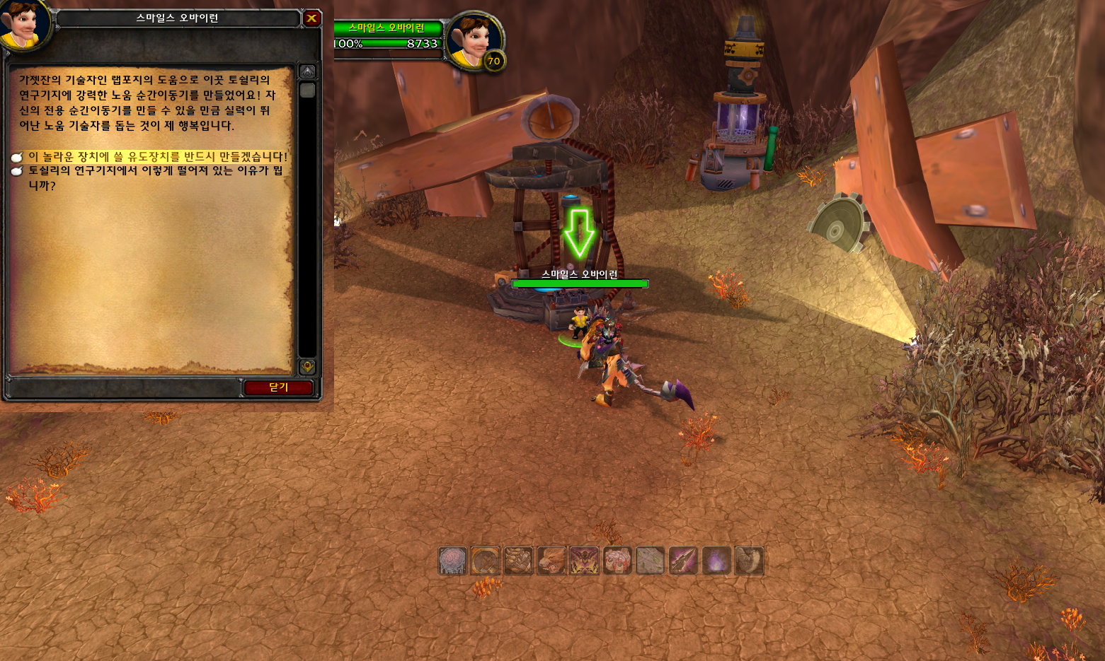 - k 눌러서 전문화 밀어버리고 고블린/노움 기공 퀘스트를 다시 깨면 됨.